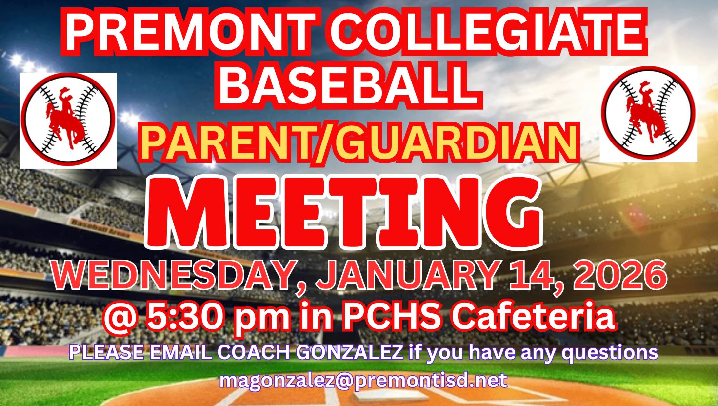 MANDATORY PARENT MEETINGPlease mark your calendars. January 12, 2026 beginning at 5:45 PCHSParent or Guardian must attend with student.