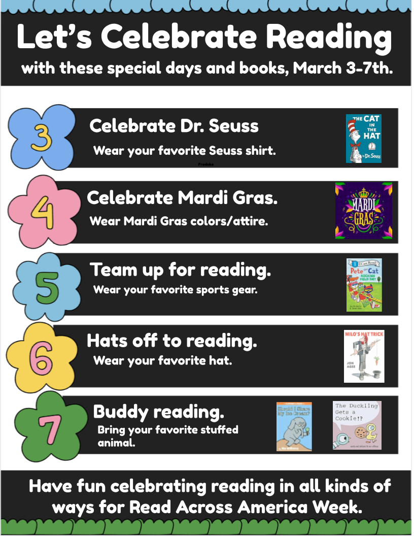 Premont Early College and Montessori Academies will be celebrating Read Across Amercia Week - March 3rd thru March 7th.